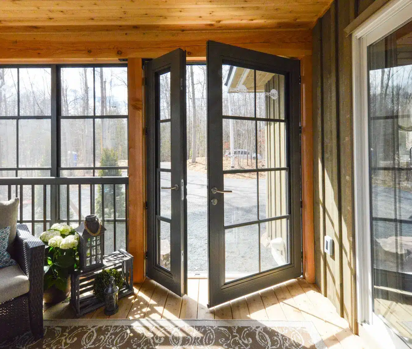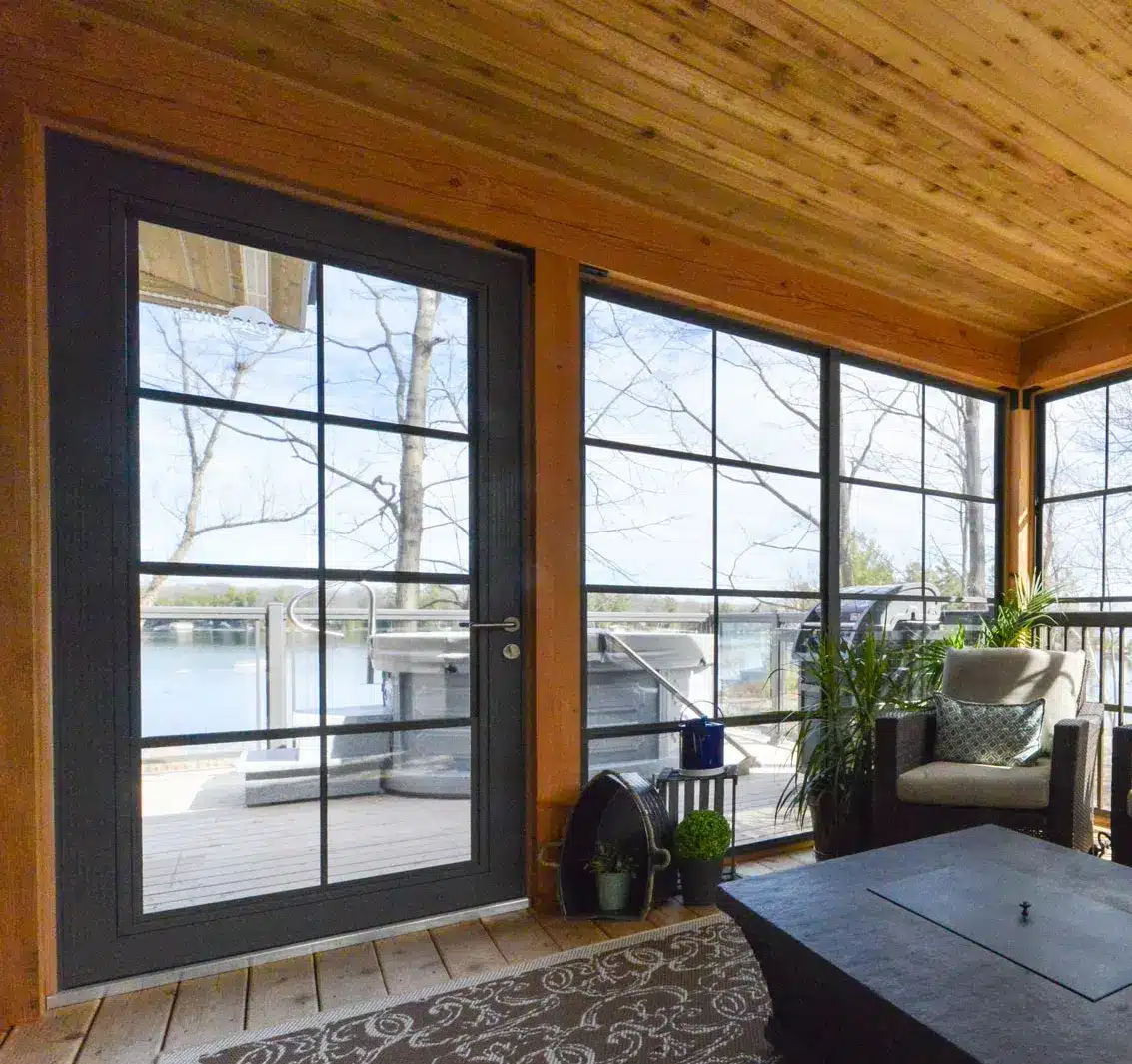 The Sunspace Vertical 4-Track Entry Door is designed for use in both sunroom and porch enclosure installations. It shares the same foundation as the WeatherMaster© Window, offering a customizable window and adjustable knee wall height. By incorporating the Sunspace entry door, you can create a cohesive and visually pleasing appearance for your new sunroom or porch enclosure while enhancing its functionality.